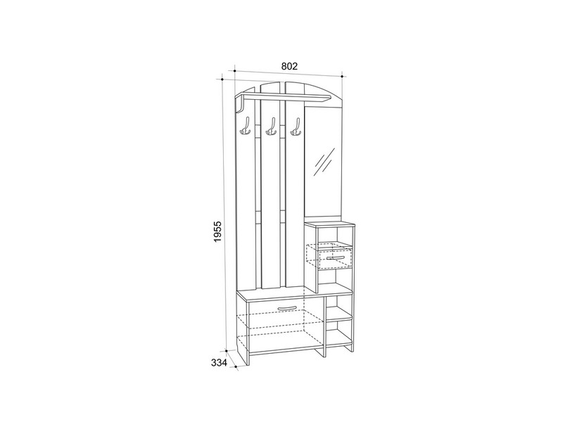 Размер: ш=802 мм, г=334 мм, в=1945 мм