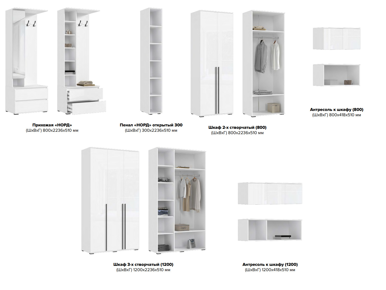 Цена за комплект: Шкаф 3-х створчатый (1200) , Антресоль к шкафу (1200), Прихожая Норд, Антресоль к шкафу (800)