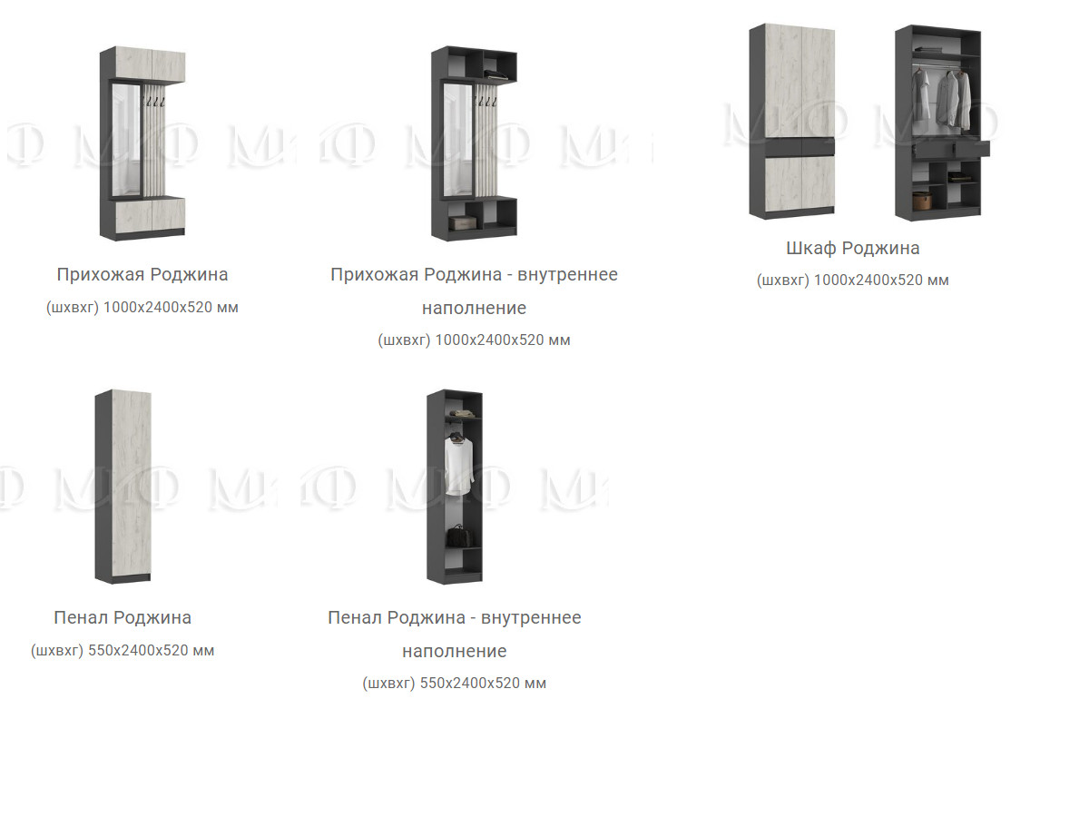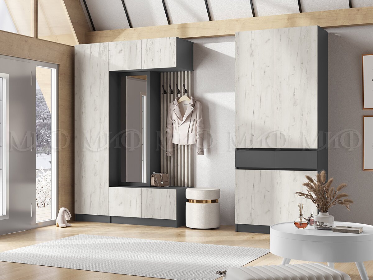 Прихожая модульная Роджина Графит/Дуб Крафт Белый