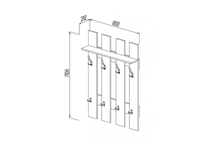 Габариты: 800(Ш) х 212(Г) х 1106(В) мм.