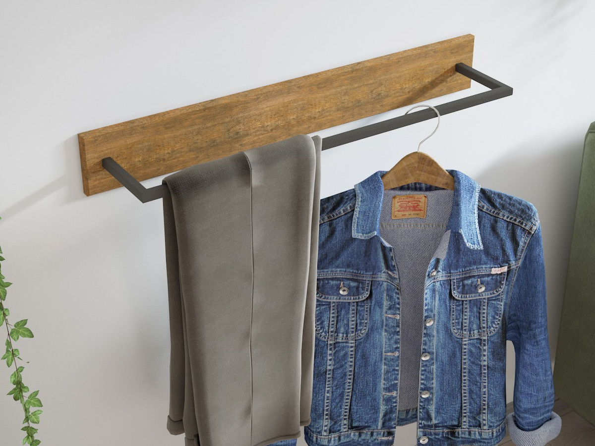 Вешалка выполнена из экологичного и прочного материала МДФ в сочетании с профильной трубой 15 мм.