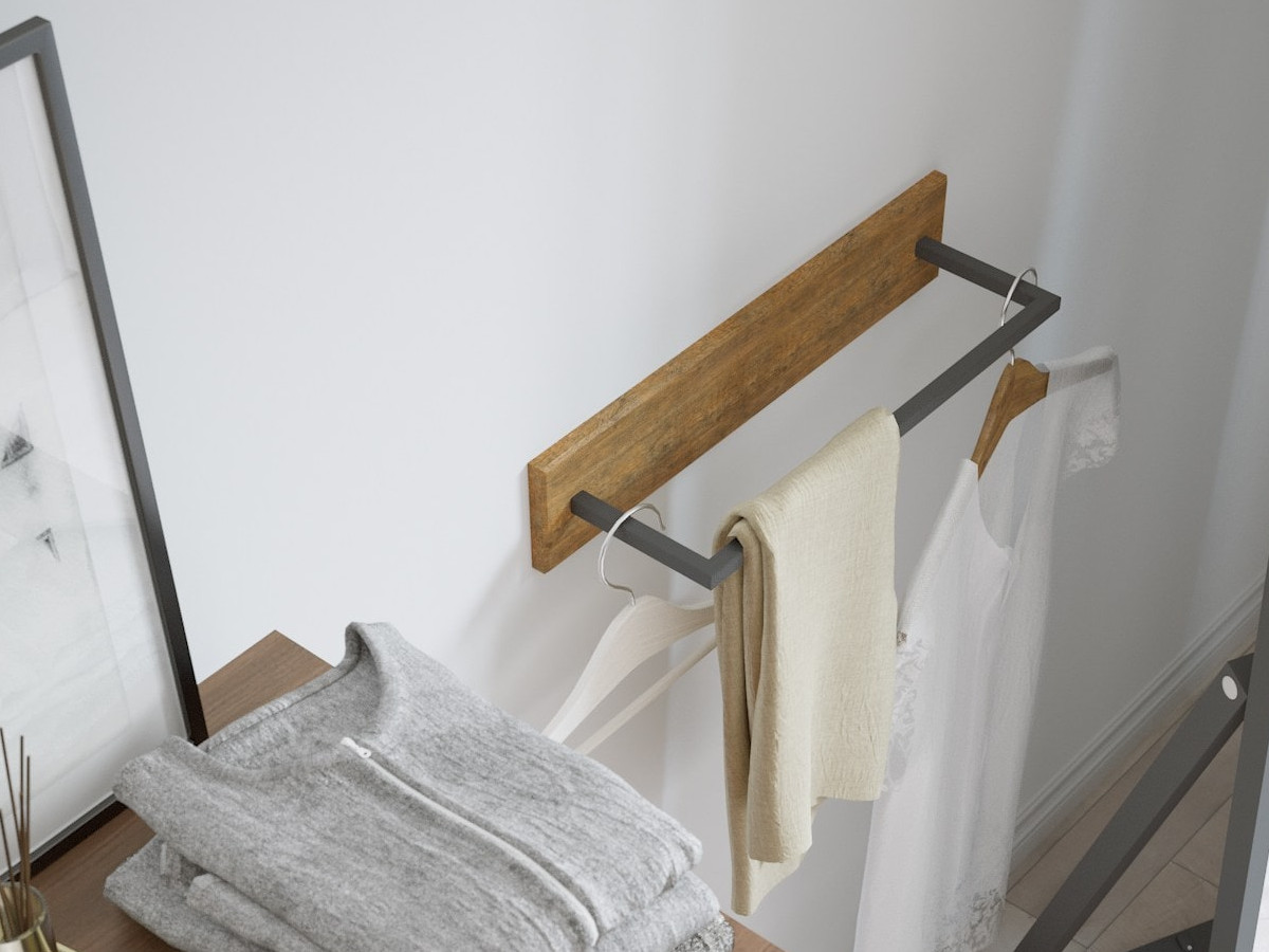 Вешалка выполнена из экологичного и прочного материала МДФ в сочетании с профильной трубой 15 мм.