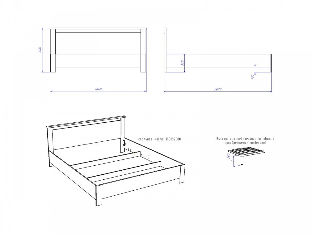 Спальное место: 1800*2000 мм