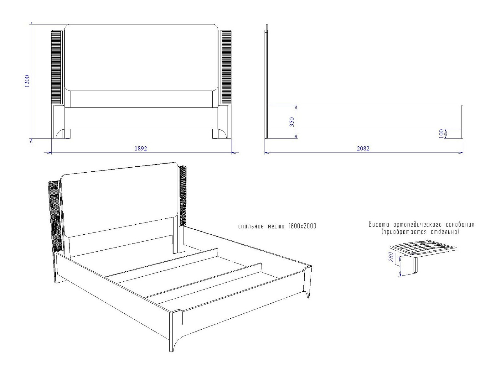 Кровать дополнена мягкой спинкой, выполнена в однотонной обивочной ткани (велюр).