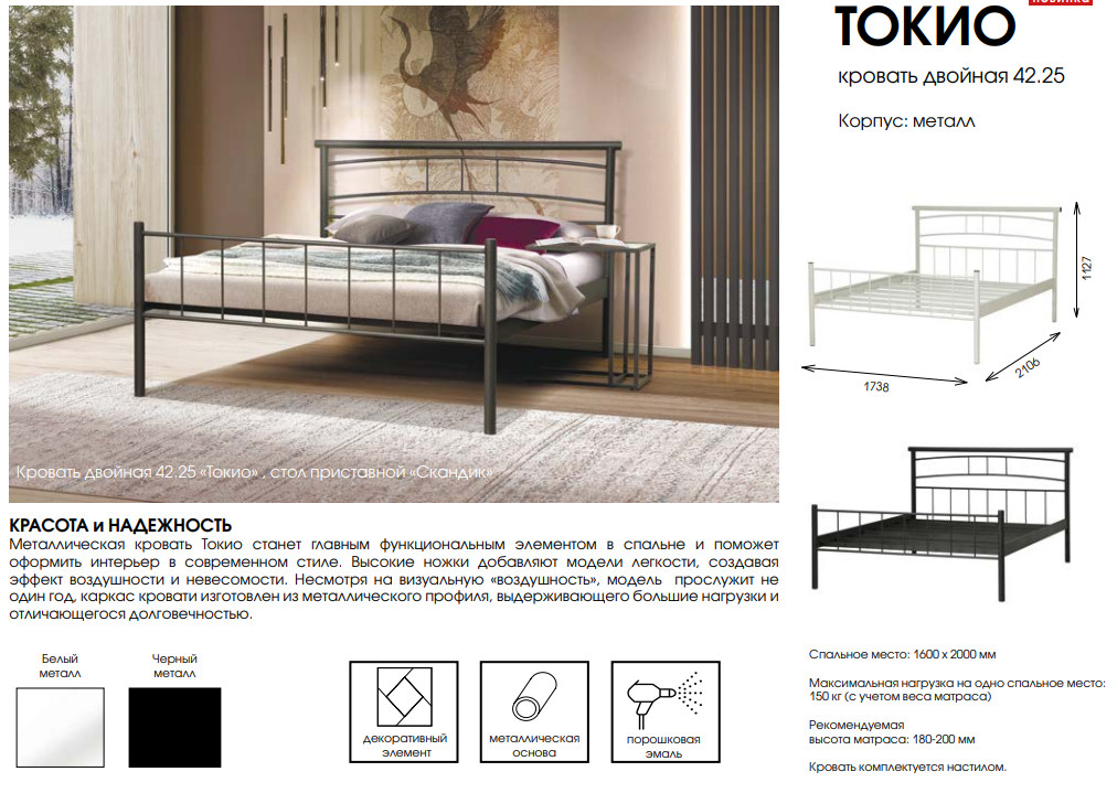 Максимальная нагрузка на одно спальное место: 150 кг (с учетом веса матраса)