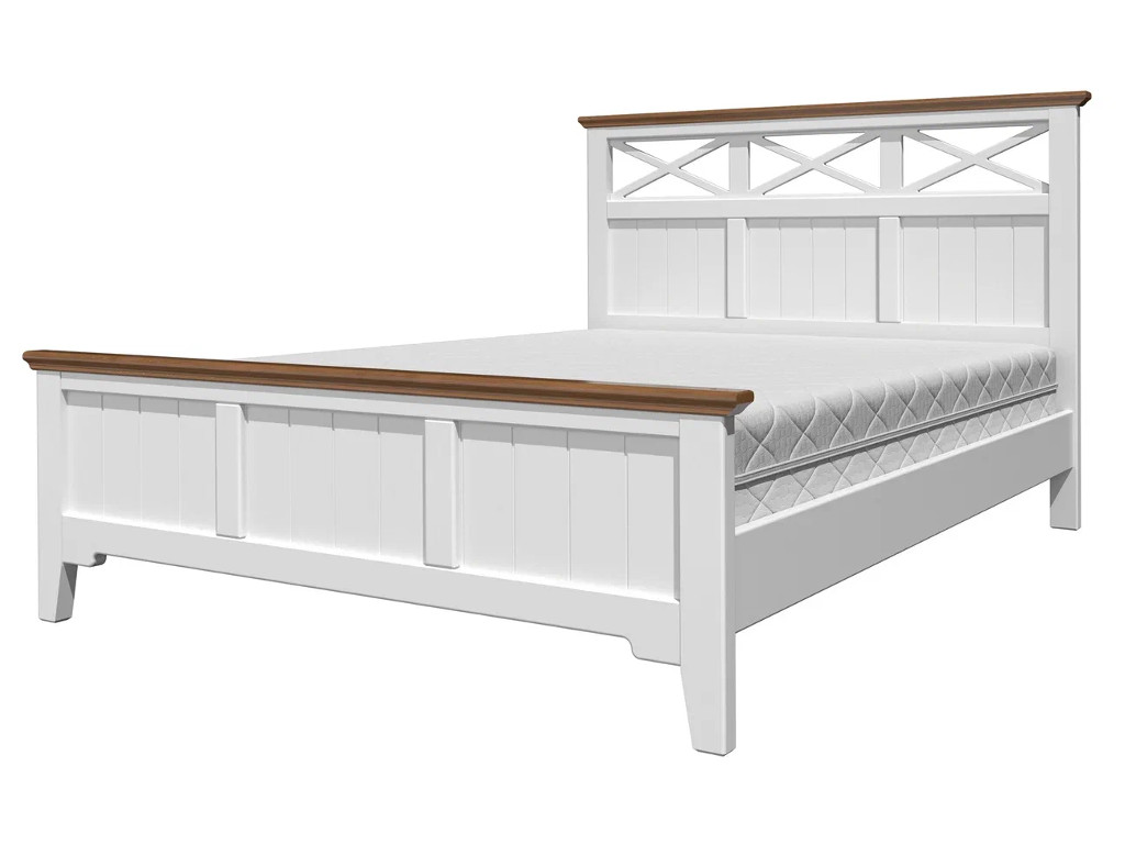 - Кровать Грация-5 1600 Белый античный с карнизом Дуб коньяк