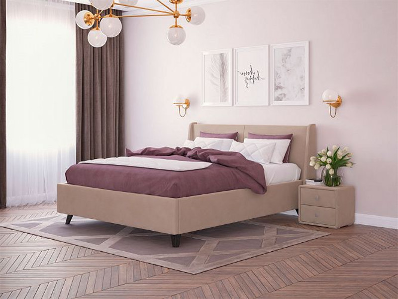 - Кровать Лорен с ПМ 1200х2000 мм микровелюр бежевый
