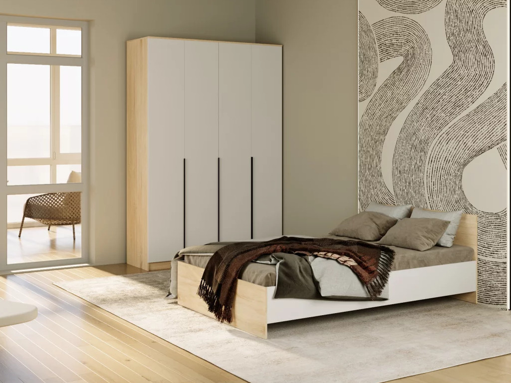 - Кровать Монблан 120х200 см Белый Шагрень-Дуб сонома