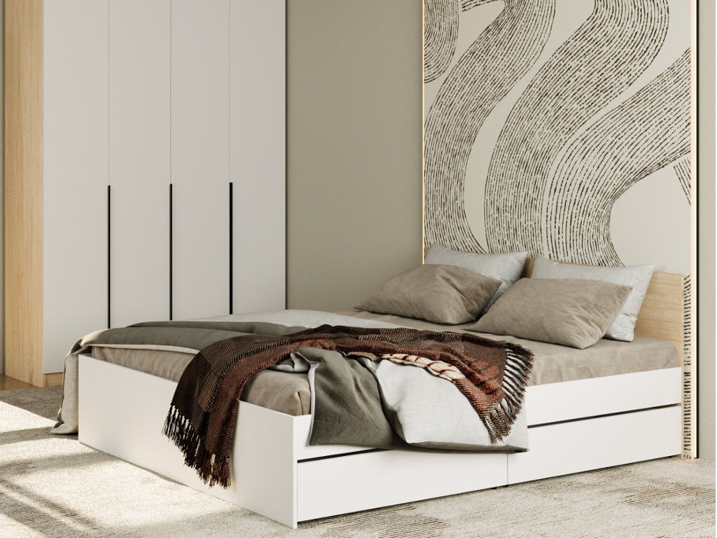 - Кровать Монблан с ящиками 160х200 см Белый Шагрень