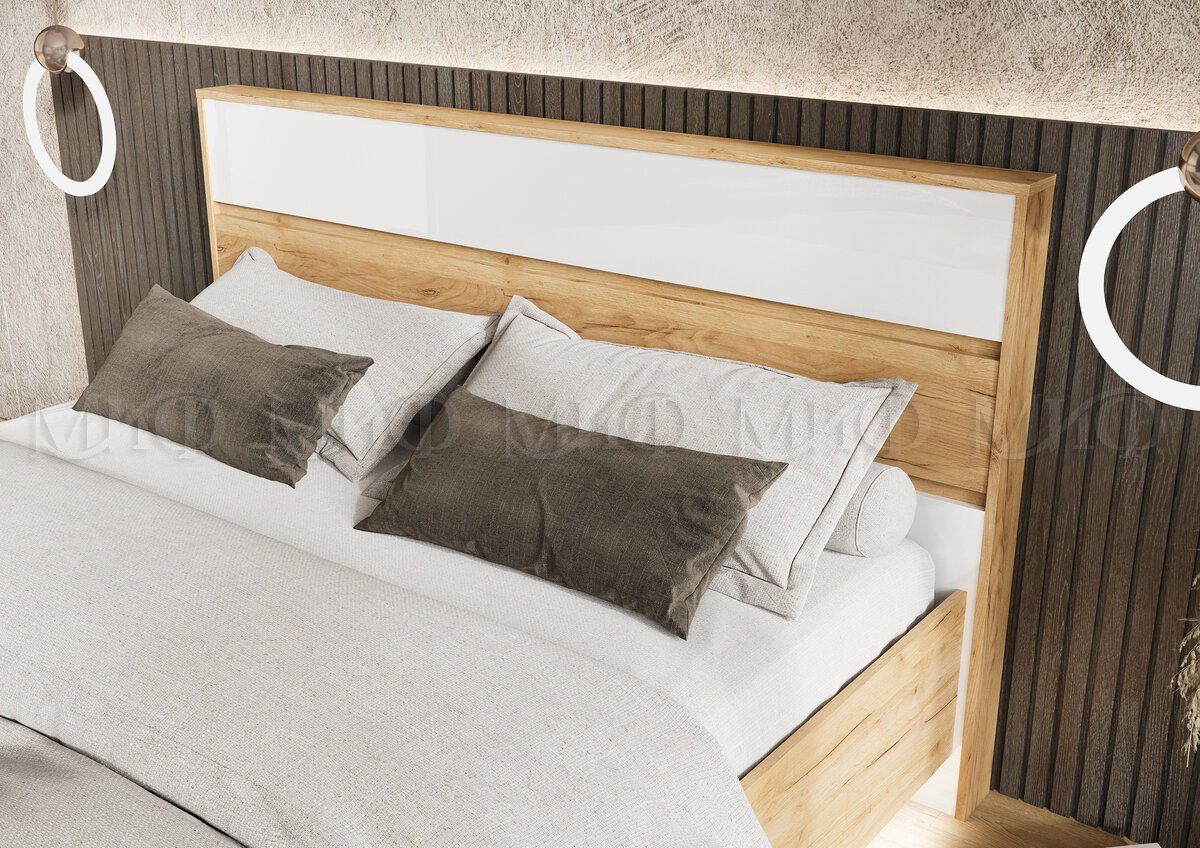 Кровать парящая 1600 Роджина (ортопед дерево) Белый глянец холодный/Дуб Крафт