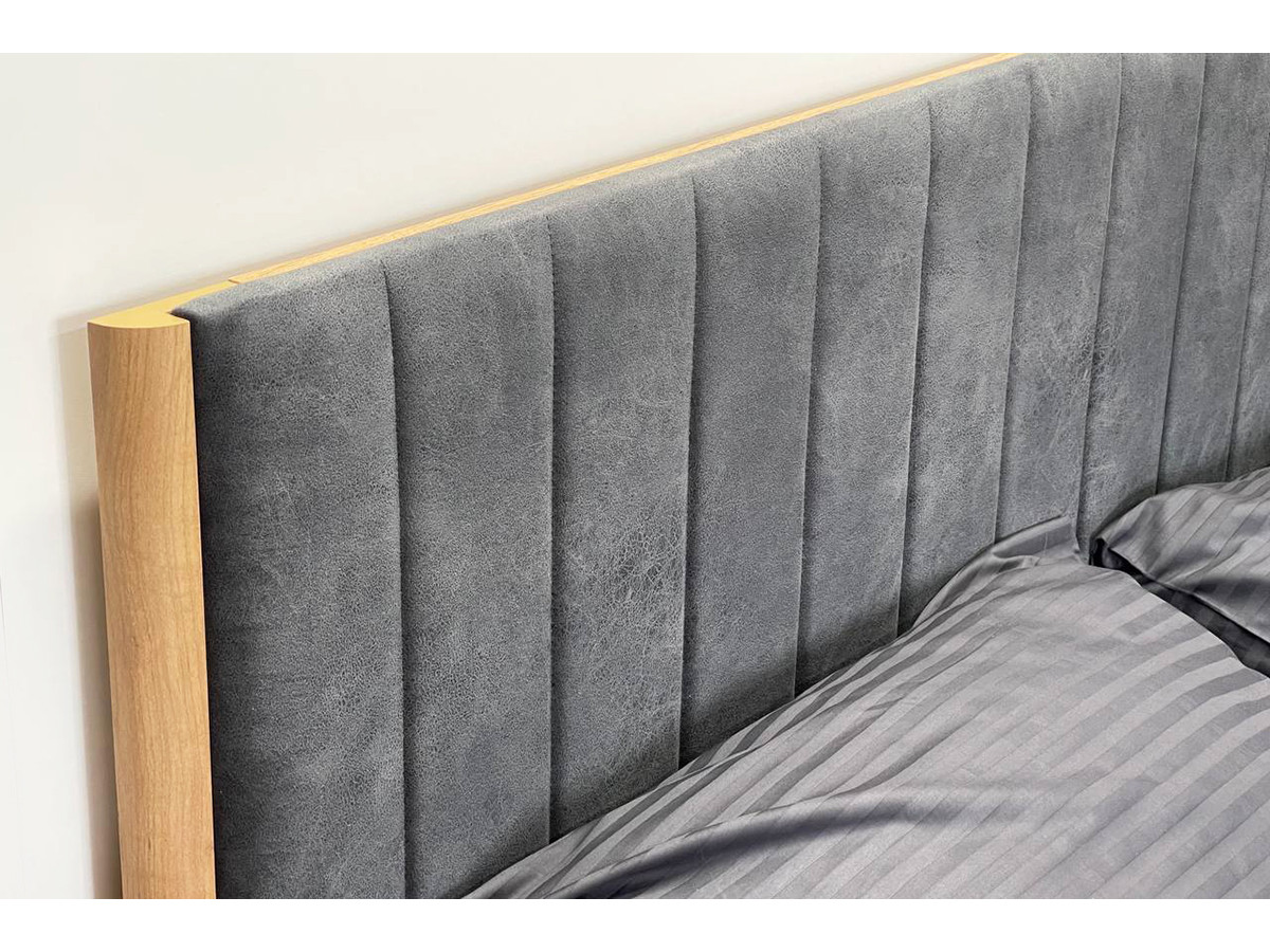 - Кровать с подъемным механизмом Адам дуб крафт золотой/грей алькантара