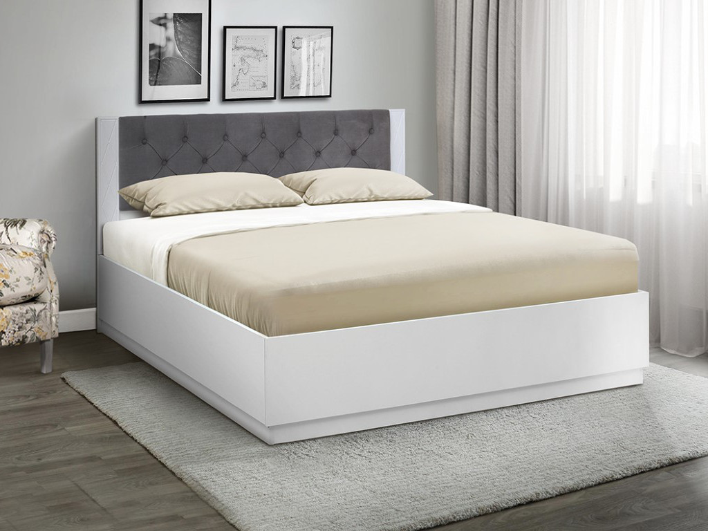Кровать двойная с подъемным механизмом с мягкой головной спинкой