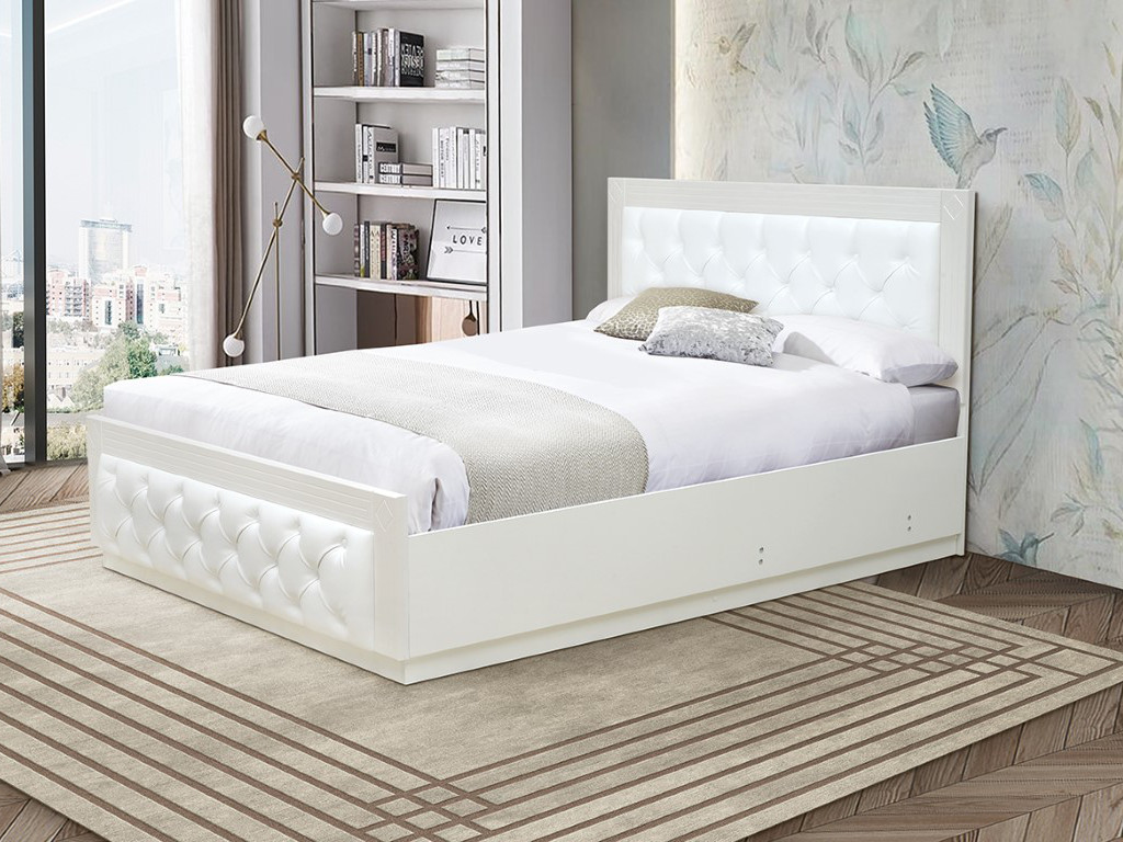 - Кровать Венеция 13.2 1400 с ортопедическим основанием кожзам белый