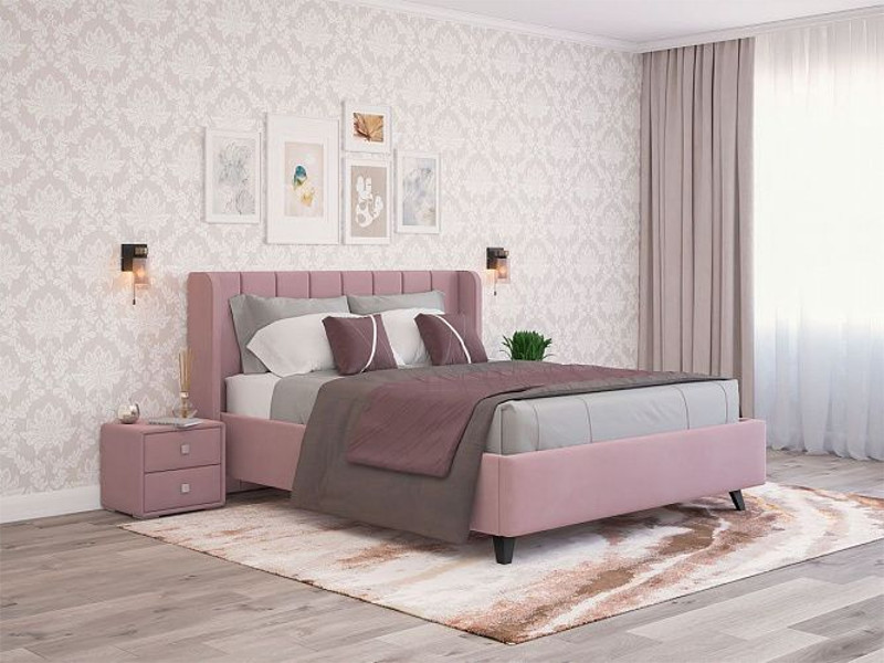 - Кровать Виола с ПМ 1200х2000 мм микровелюр розовый