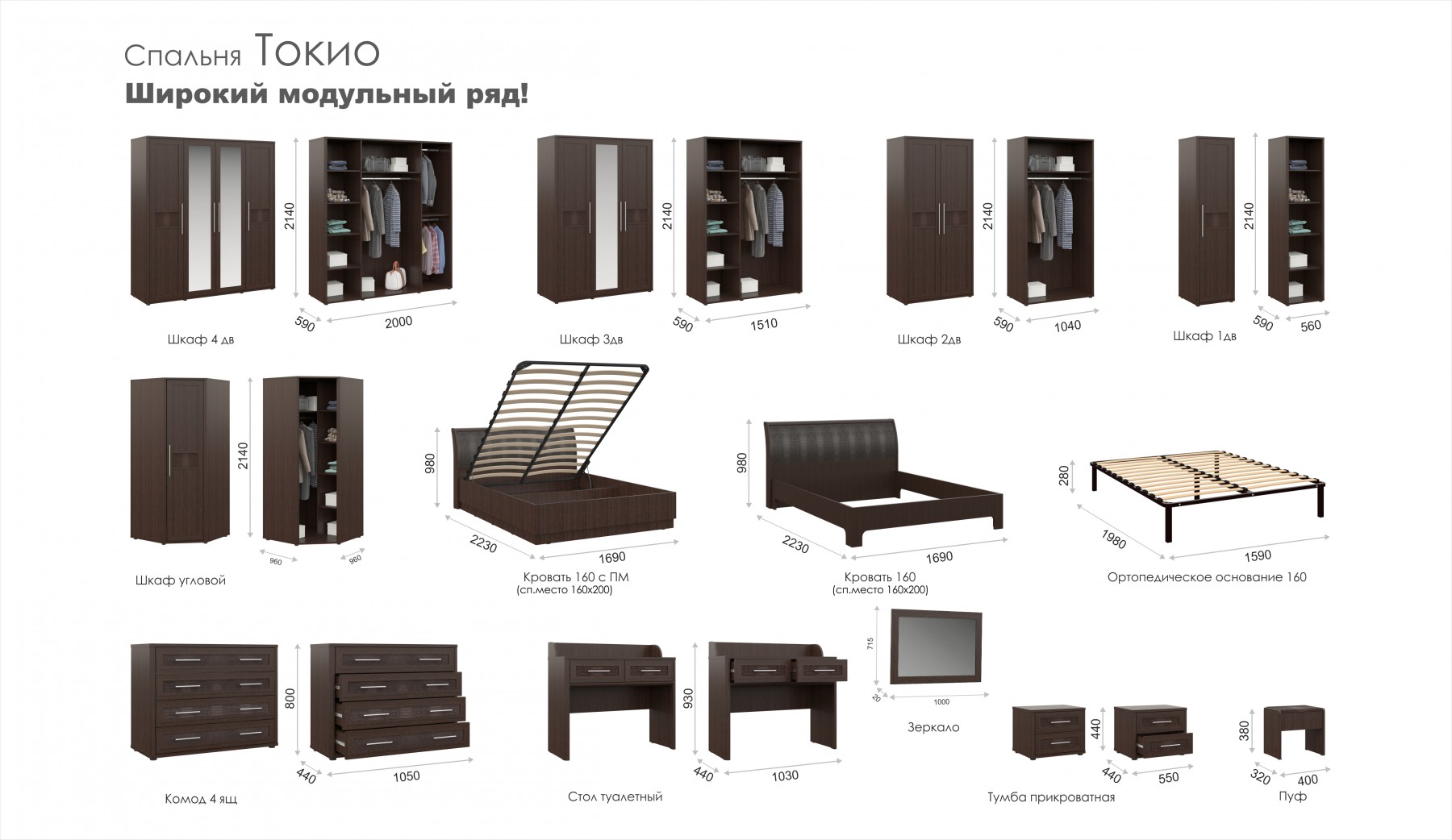 Спальня модульная, комплектуется по вашему выбору. Цена указана за комплект на главном фото - комод, шкаф 4 дверный, тумба прикроватная - 2 шт, кровать 160 без основания