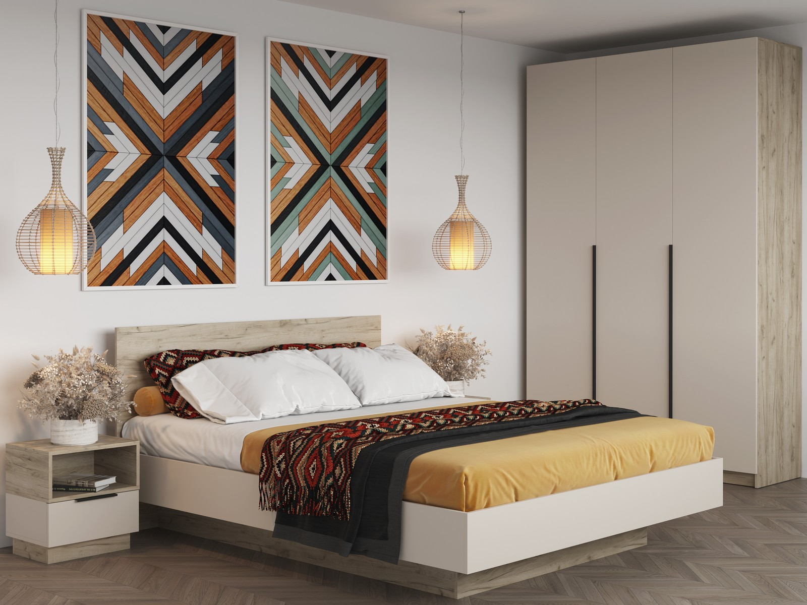 Цена указана за комплектацию на фото: Кровать КР-001, Тумба прикроватная ТМ-002 (2 шт), Шкаф-купе ШК-006