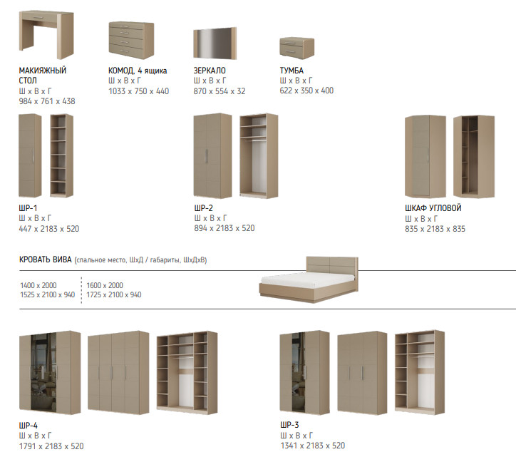 Цена указана за комплектацию на фото: зеркало, стол туалетный,тумба прикроватная (2шт), кровать двойная 1400, металлокаркас