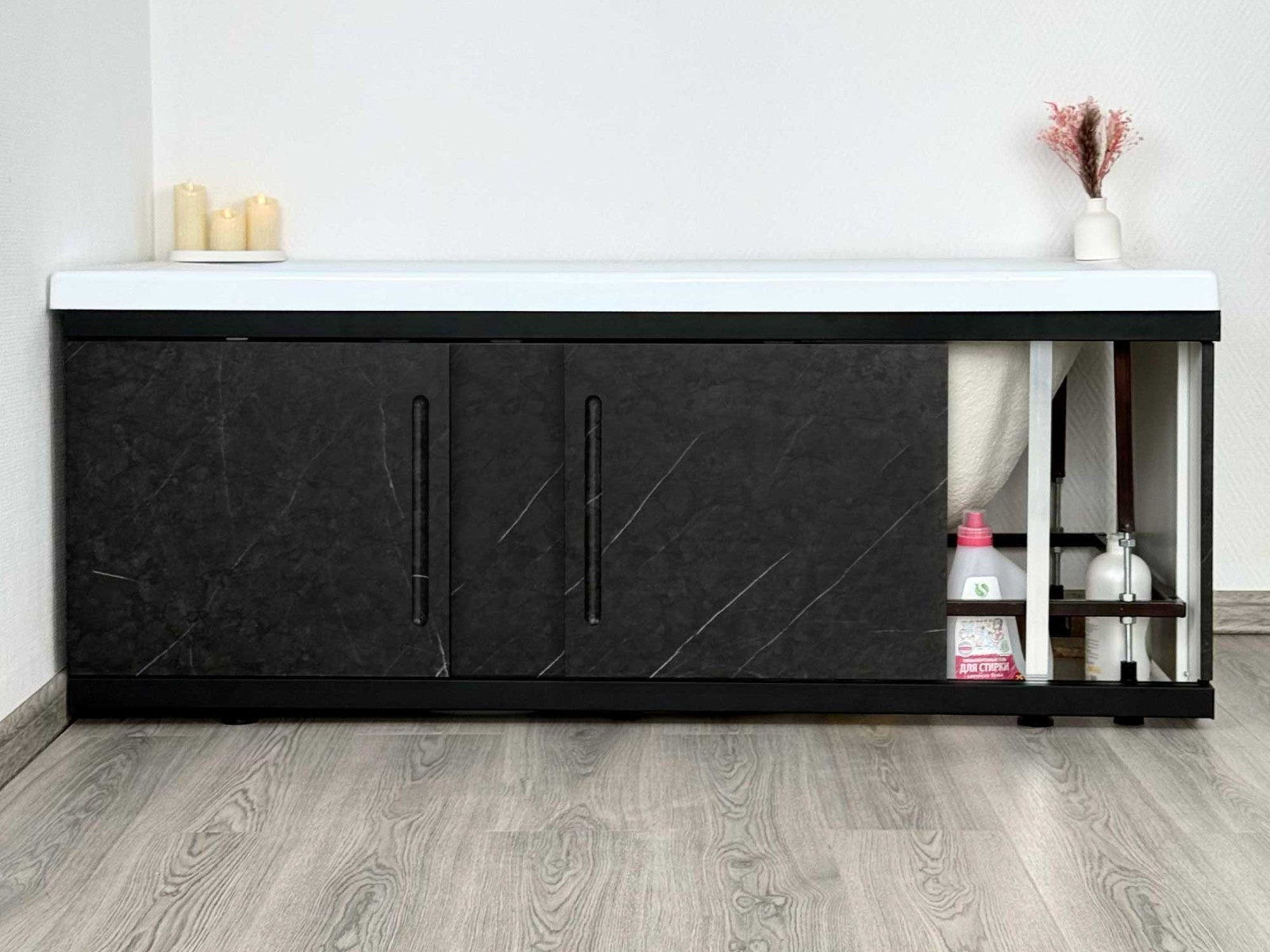 - Экран под ванну МДФ Alt Black 1800 мм черный мрамор