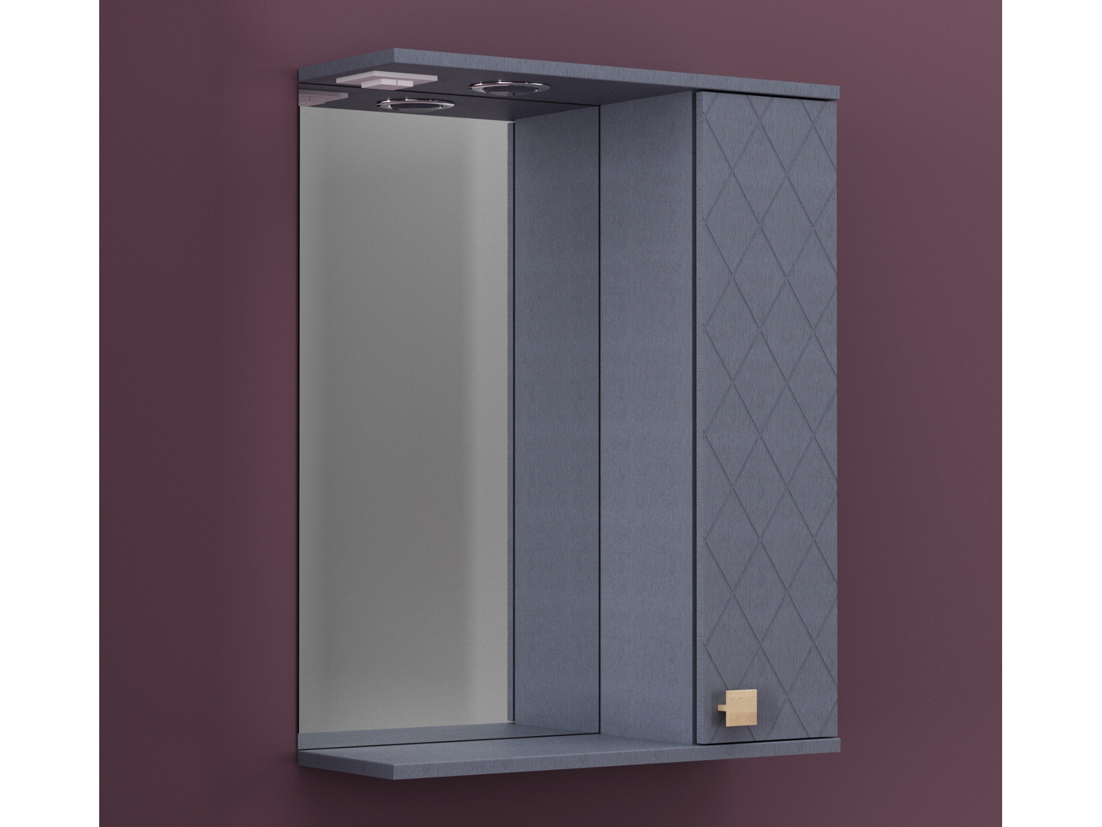 - Зеркало "Кристалл" 60 со светильником правый, ручка кнопка дуб