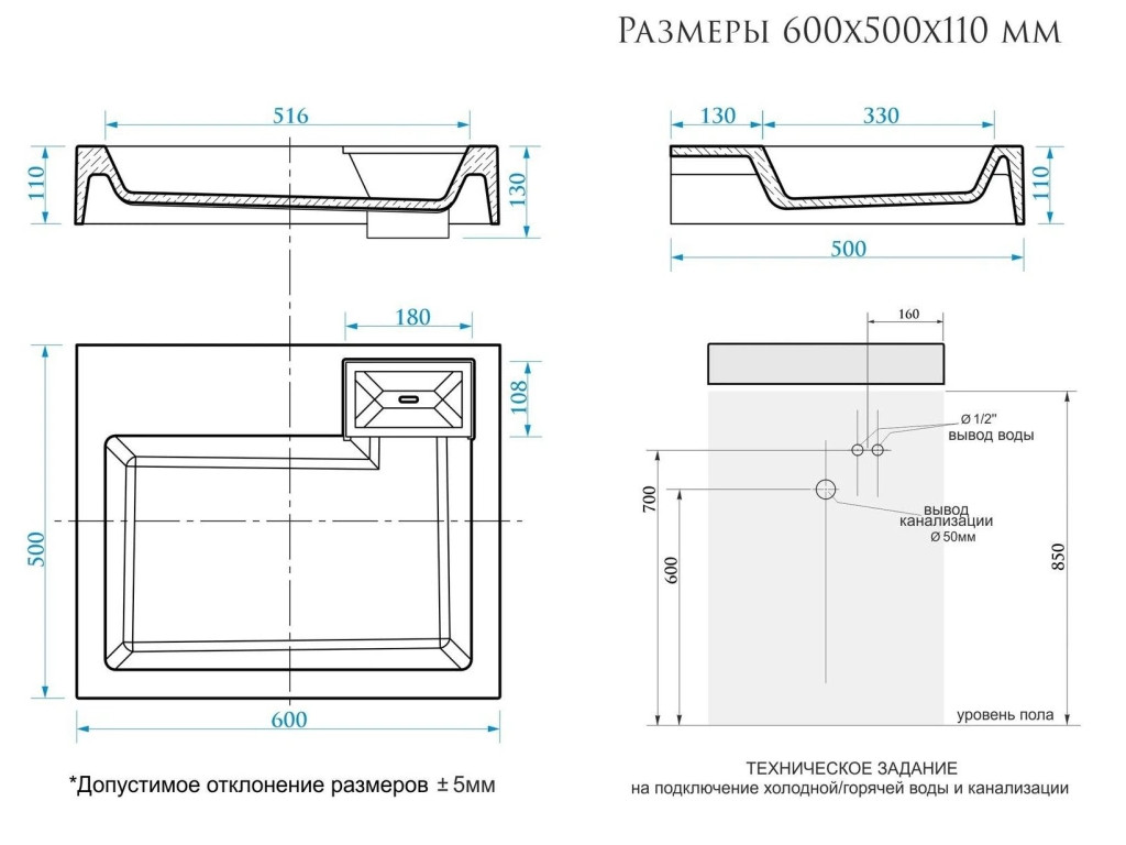 - Изготовлена из литьевого мрамора с покрытием гелькоут