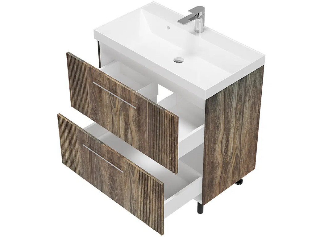 - Тумба Альба 80 напольная 2 ящика Слим 60 дерево