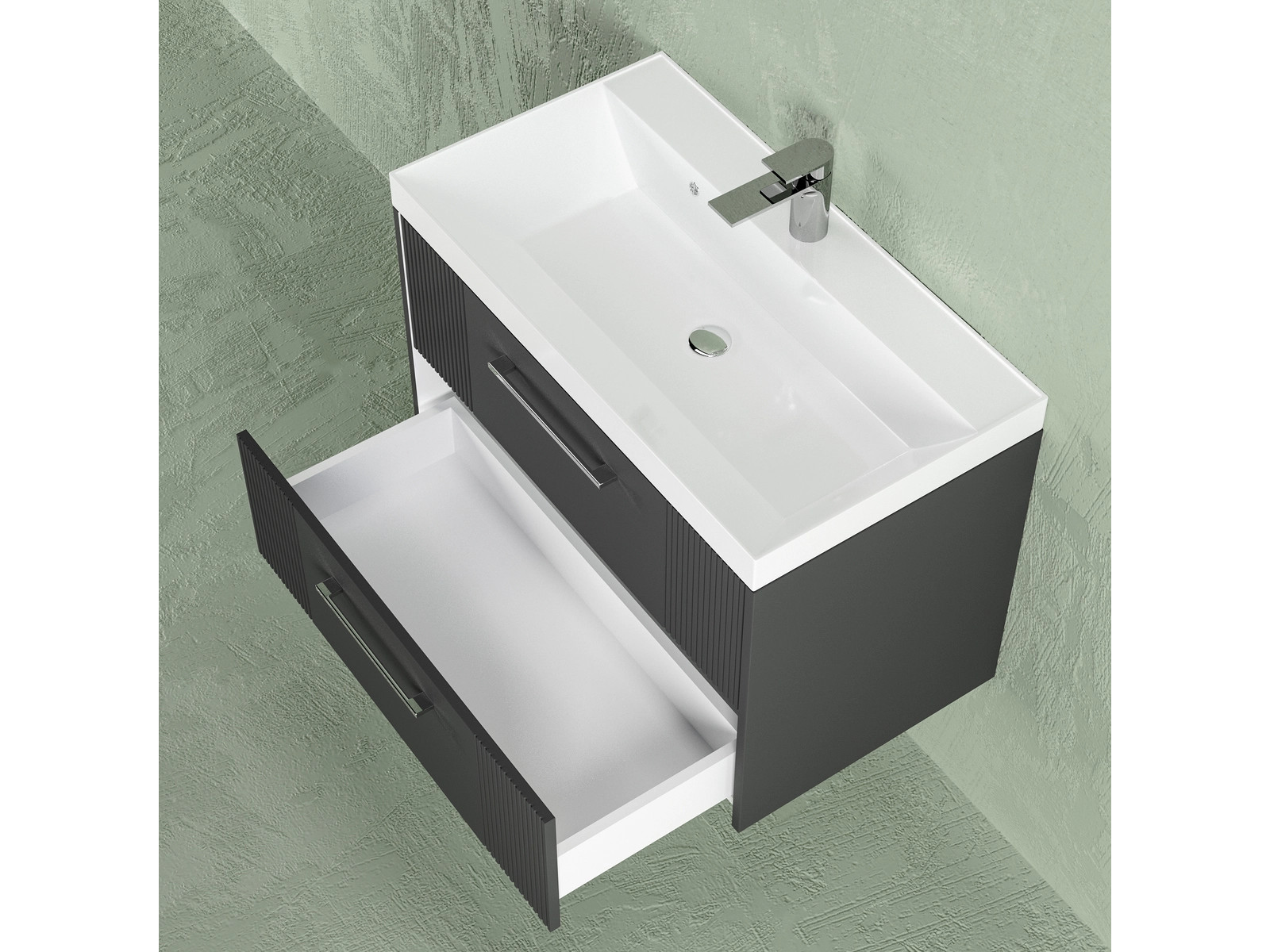 - Тумба Альба 80 подвесная 2 ящика раковина Комфорт 80 антрацит