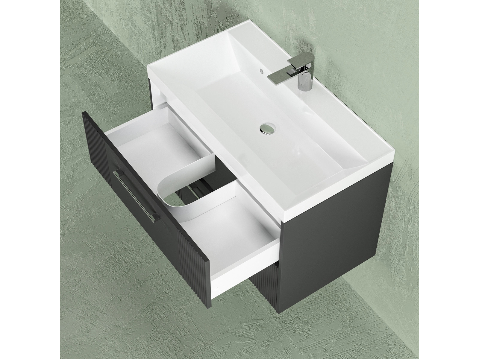 Тумба Альба 80 подвесная 2 ящика раковина Слим 80 антрацит