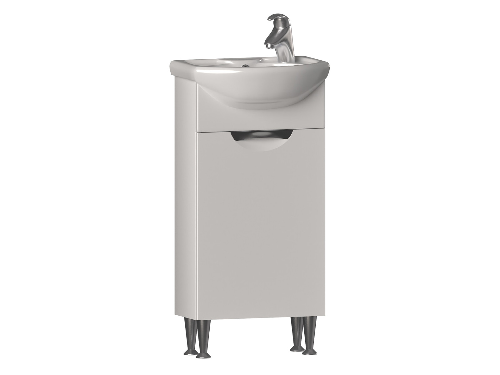 Оснащение: 1 дверца; 1 полка ЛДСП; ручка металлическая хромированная; опоры конус регулируемые