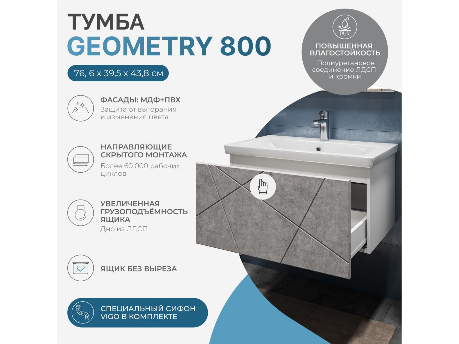 - Тумба Geometry 800-0-1 Como навесная бетон