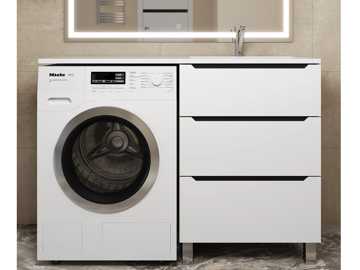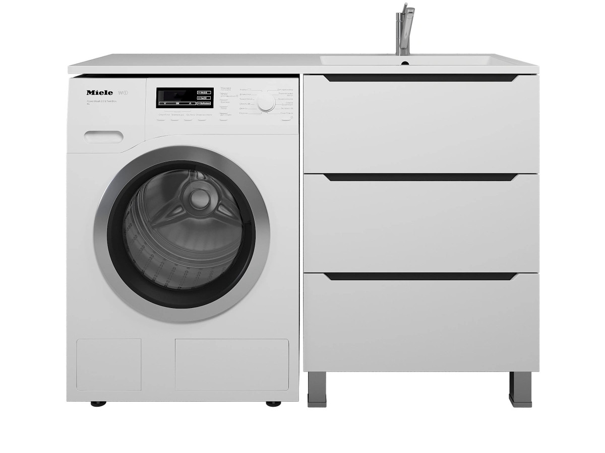Тумба под стиральную машину Uperwood Tanos 60 см, напольная, 3 ящика, белая/графит