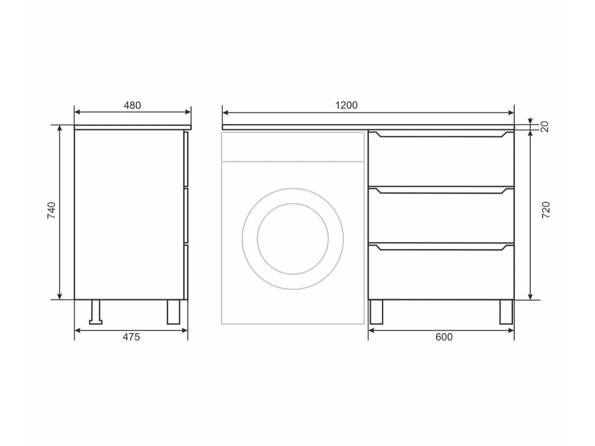 - Тумба под стиральную машину Uperwood Tanos 60 см, напольная, 3 ящика, белая/графит