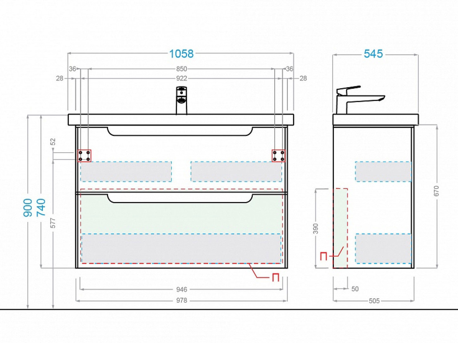 - Материал раковины: Фаянс