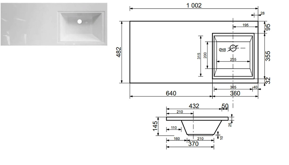 - Тумба с раковиной Dallas Luxe 1000 навесная 1 ящик правая