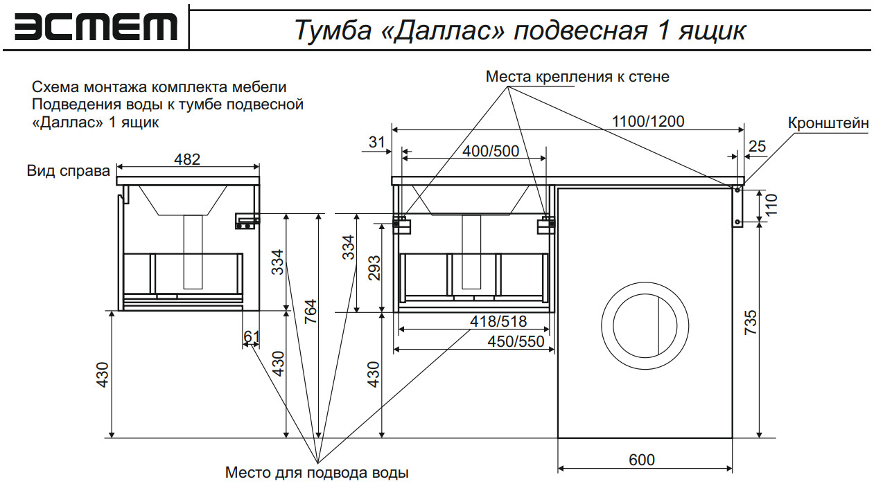 - Тумба с раковиной Dallas Luxe 1150 навесная 1 ящик левая