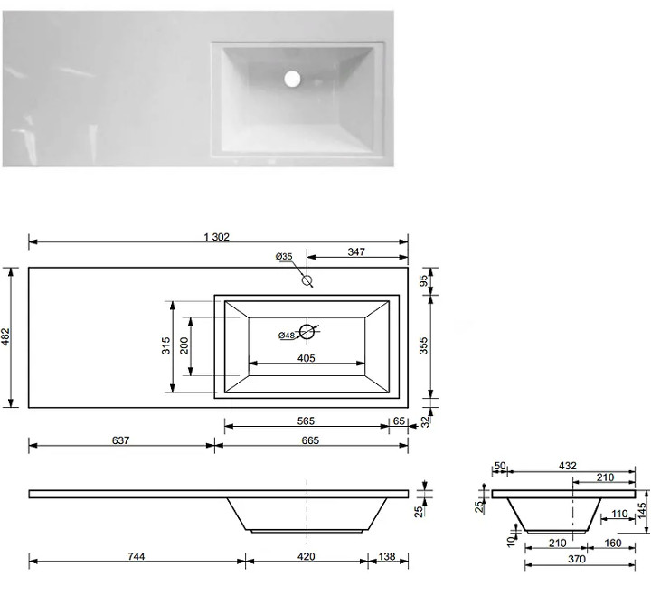 - Тумба с раковиной Dallas Luxe 1300 навесная 2 ящика правая