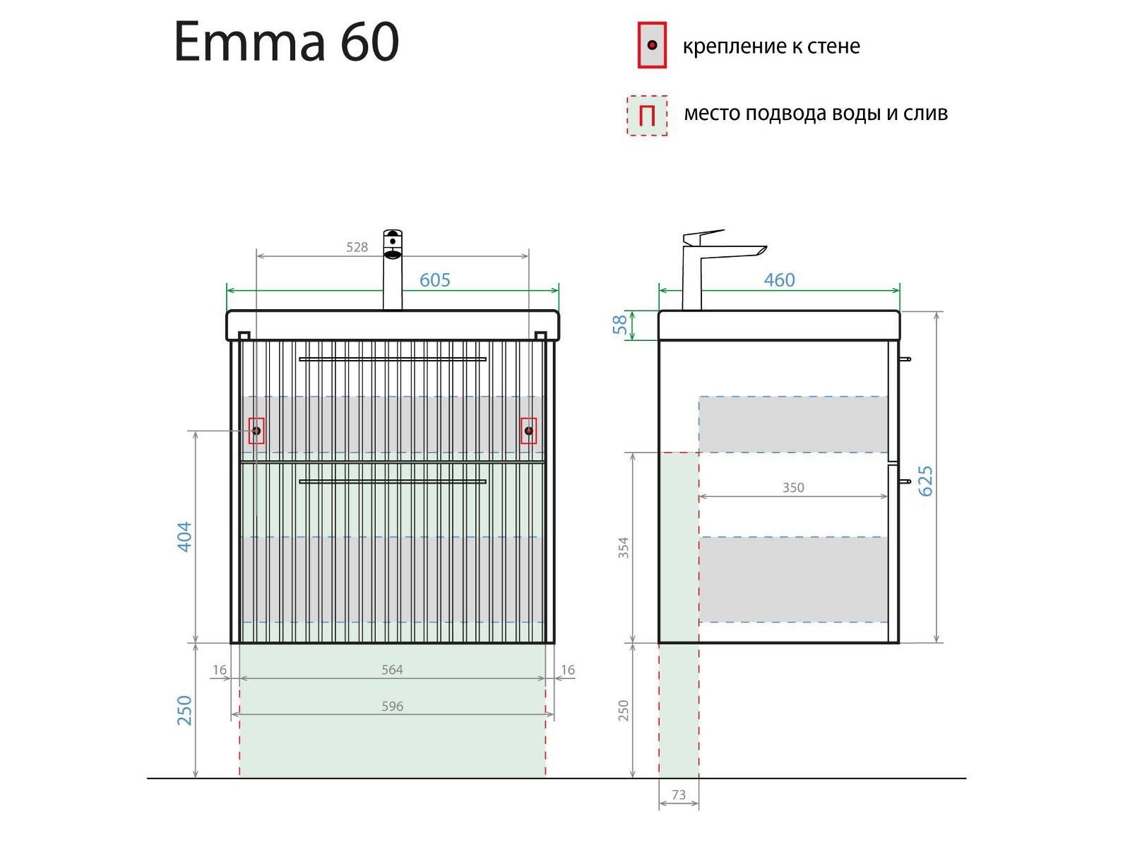 - Тумба с раковиной Emma 60 Умывальник Moduo 60