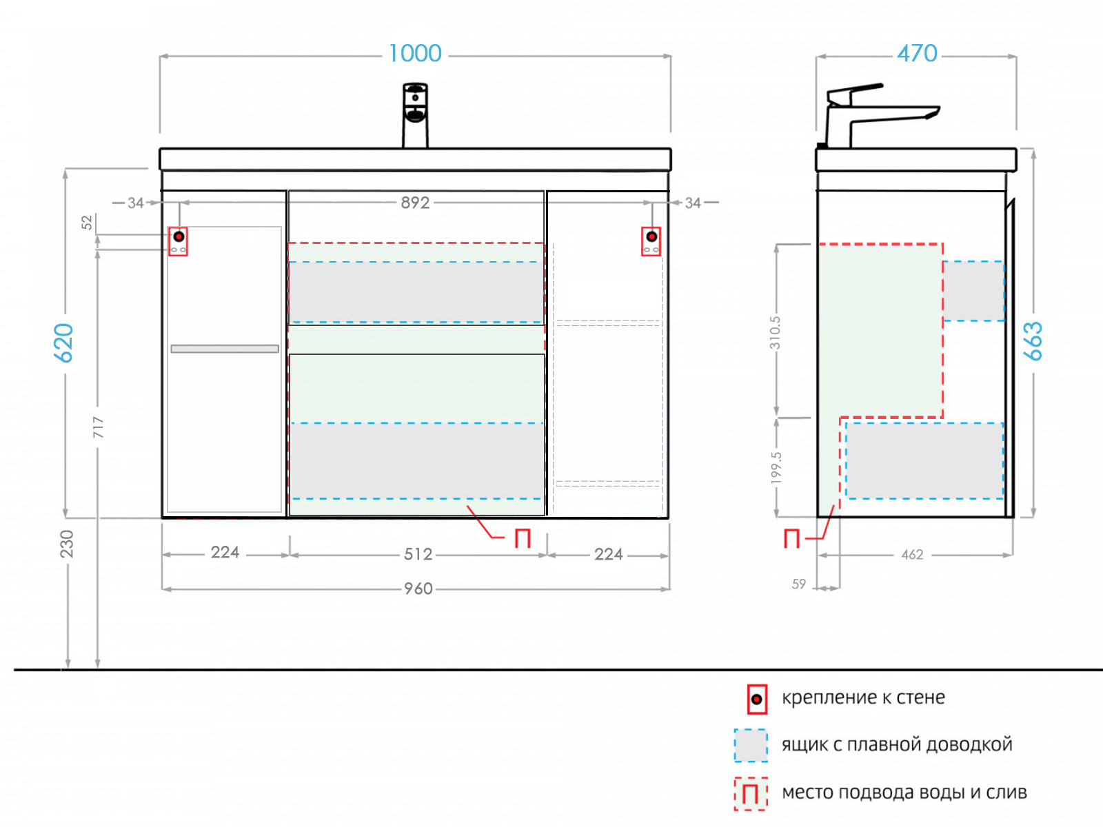 - Механизм ящиков: С доводчиком (плавное закрывание)