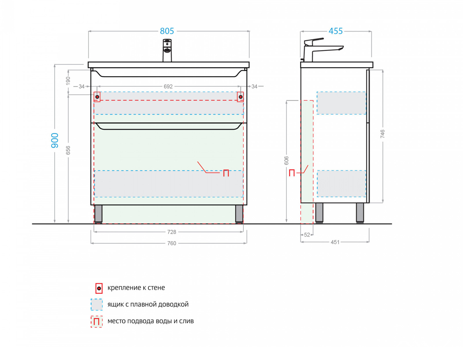 - Тумба с раковиной Lana 80 белая Умывальник Миранда 80