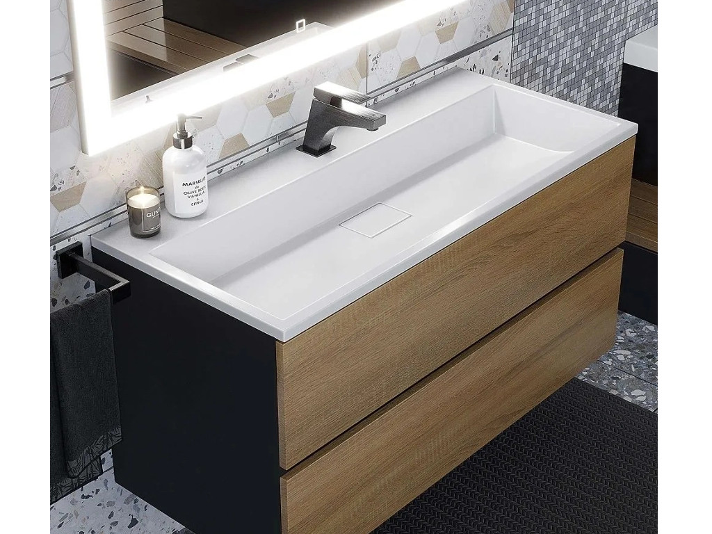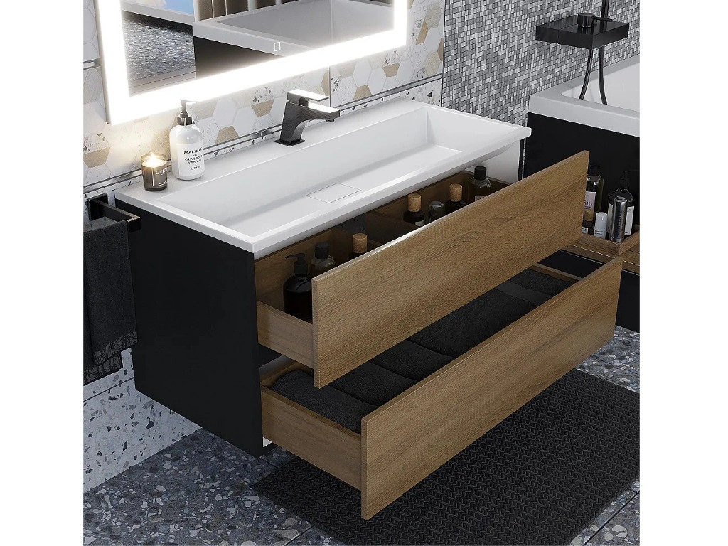 - Тумба с раковиной Uperwood Barsa 100 см раковина белая-тумба черная/дуб сонома