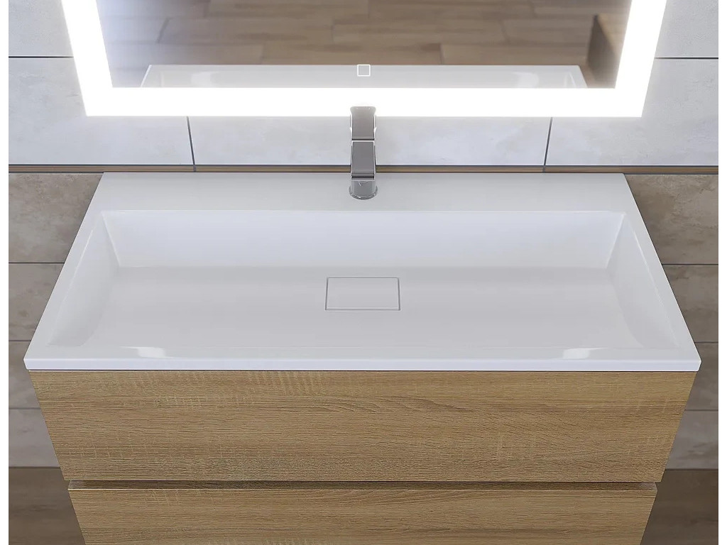 - Тумба с раковиной Uperwood Barsa 90 см раковина белая-тумба белая/дуб сонома