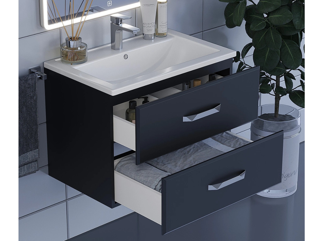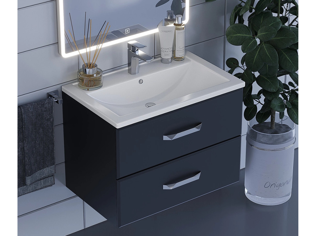 - Тумба с раковиной Uperwood Foster черная 70 см