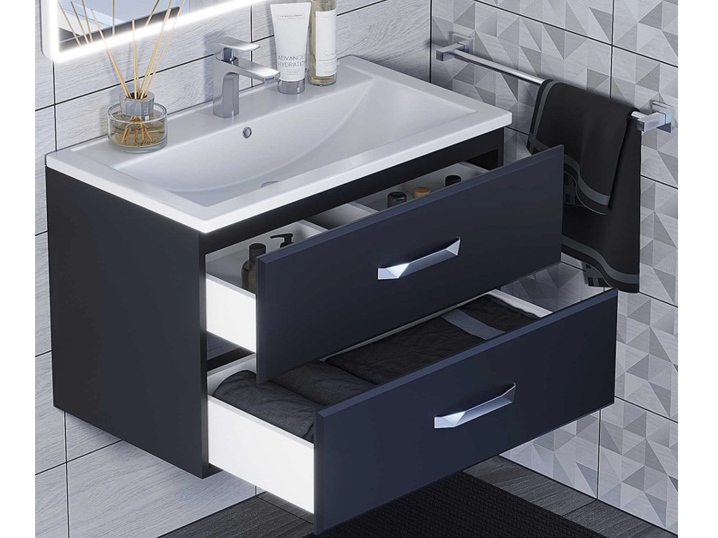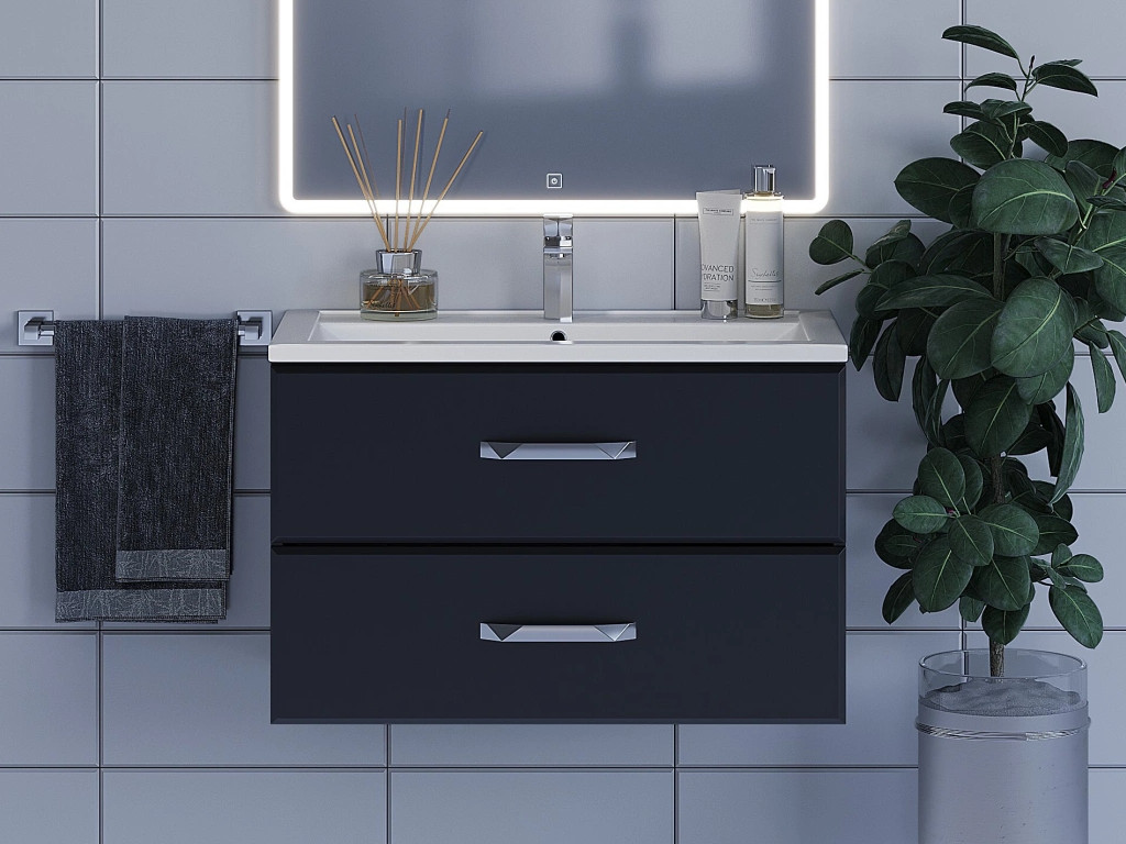 - Тумба с раковиной Uperwood Foster черная 80 см