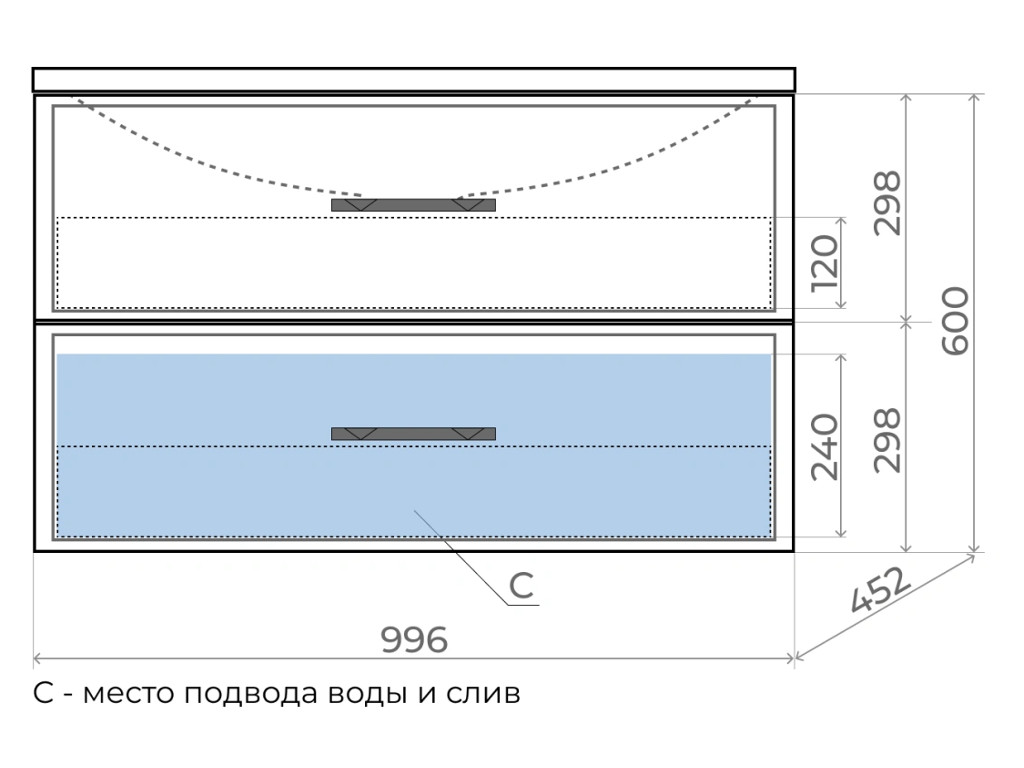- Выдвижные ящики изготовлены из влагостойкой ЛДСП.
