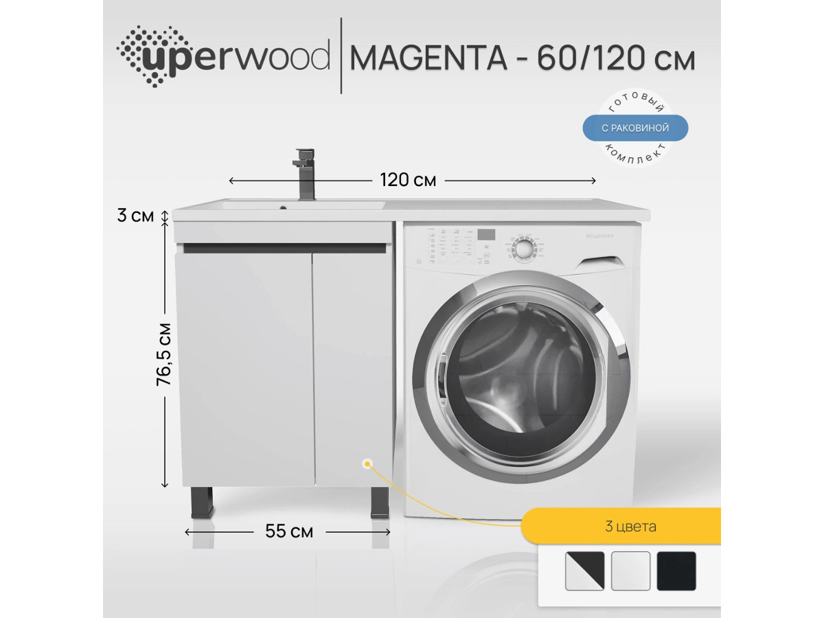 - Тумба с раковиной Uperwood Magenta 60-120 см напольная белая/графит с дверцами левая