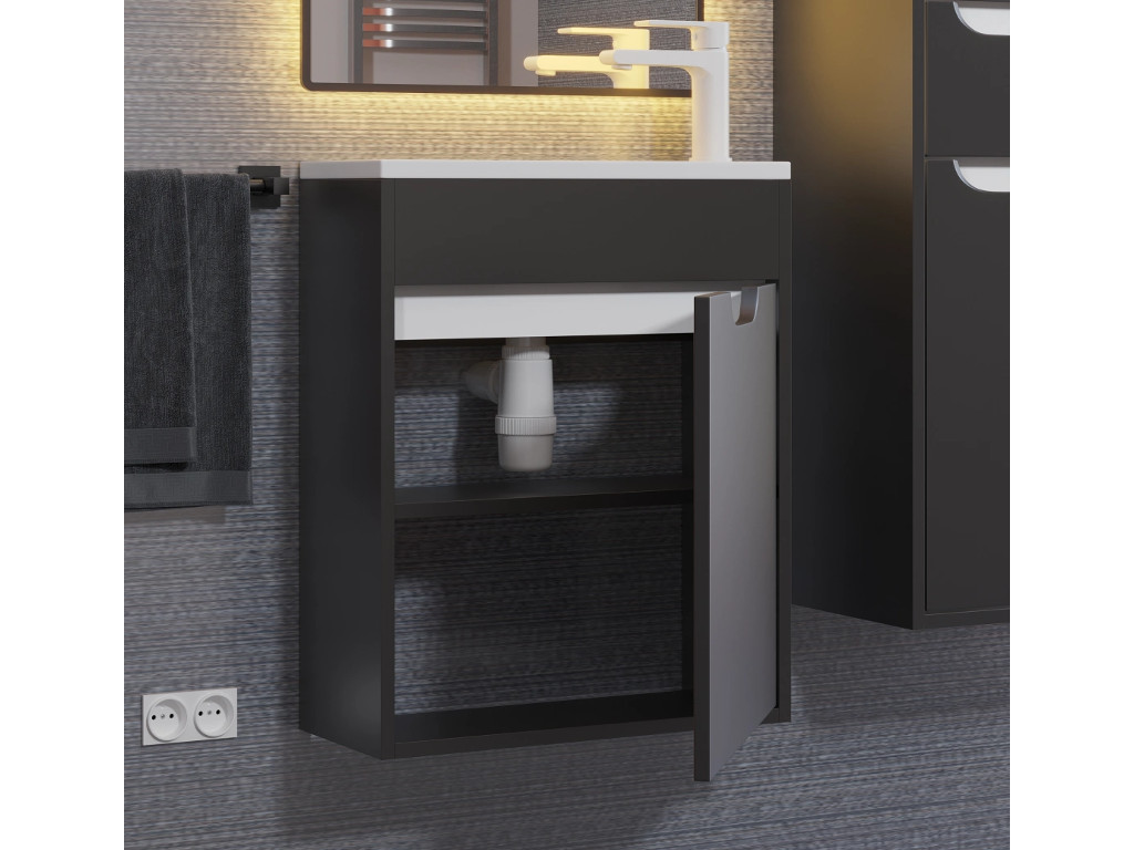- Тумба с раковиной Uperwood Modul матовая черная 50 см