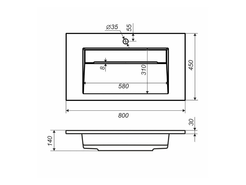 - Тумба с раковиной Uperwood Next Premium белая/графит 1 ящик 80 см