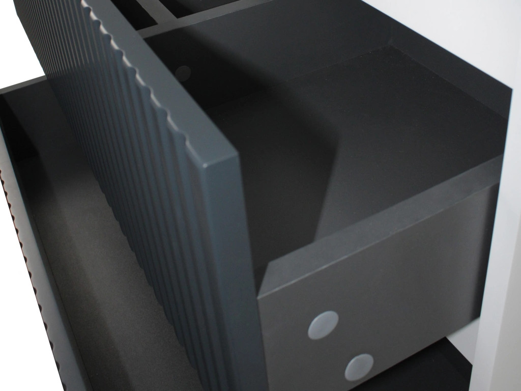 - Фасад и боковые стенки изделия выполнены из МДФ толщиной 16 мм. Фасады с вертикальной фрезеровкой.