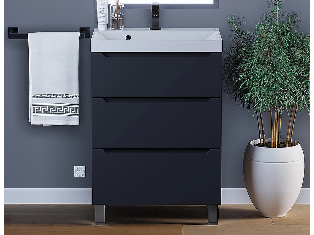 - Тумба с раковиной Uperwood Tanos 3 ящика напольная 60 см черная