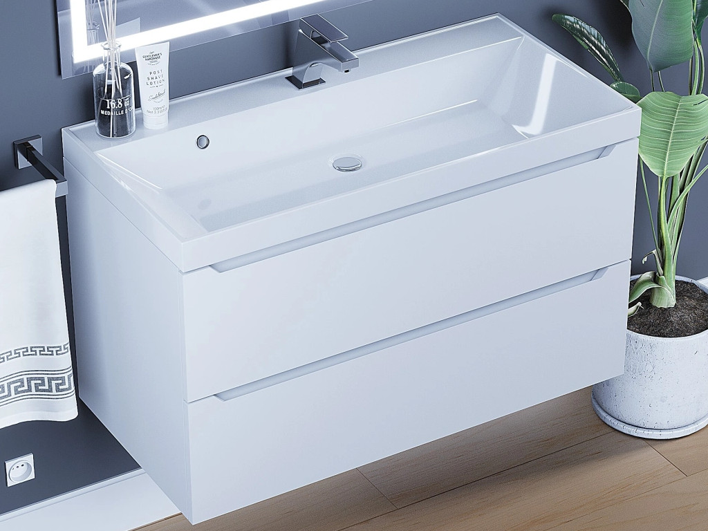- Тумба с раковиной Uperwood Tanos матовая белая 90 см