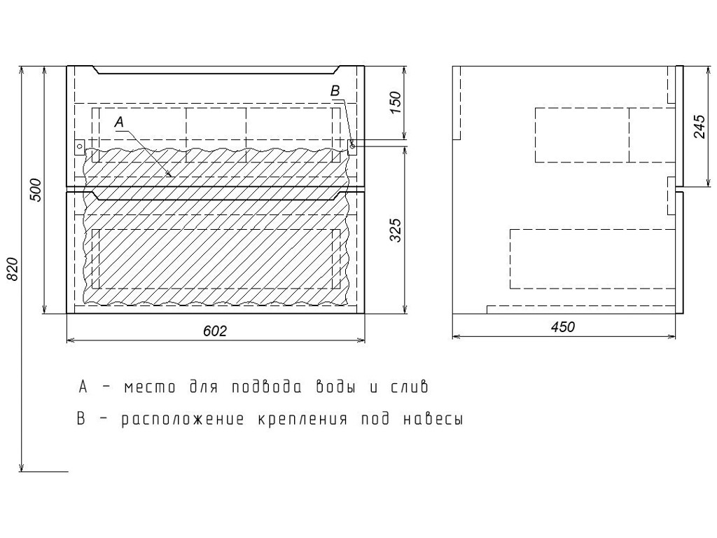 - Тумба с раковиной Uperwood Tanos матовая белая/графит 60 см